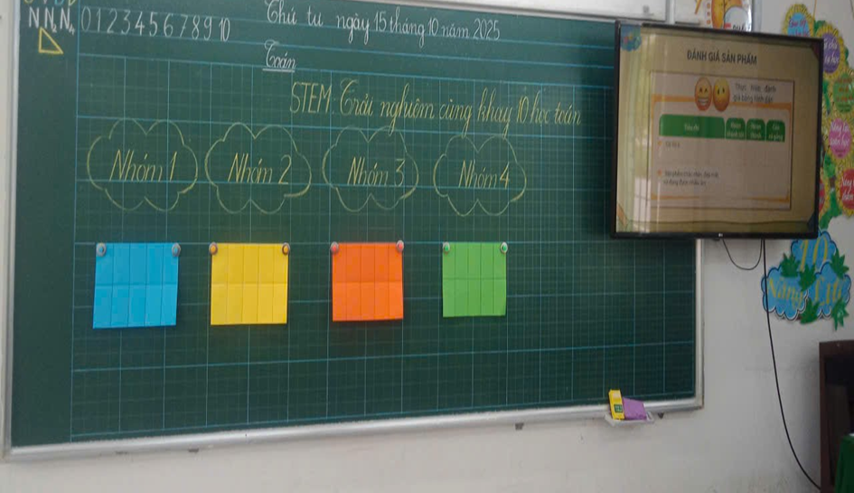 Khi sản phẩm hoàn thành, không chỉ là những chiếc “Khay 10” đầy màu sắc mà còn là nụ cười rạng rỡ, ánh mắt tự hào của học sinh. Các em tự tin bước lên thuyết trình, giới thiệu về cách nhóm mình tách số, giải thích những phép tính đơn giản nhưng đầy ý nghĩa. Tiết học không chỉ giúp học sinh hiểu sâu kiến thức mà còn bồi dưỡng sự mạnh dạn, khả năng diễn đạt trước tập thể.