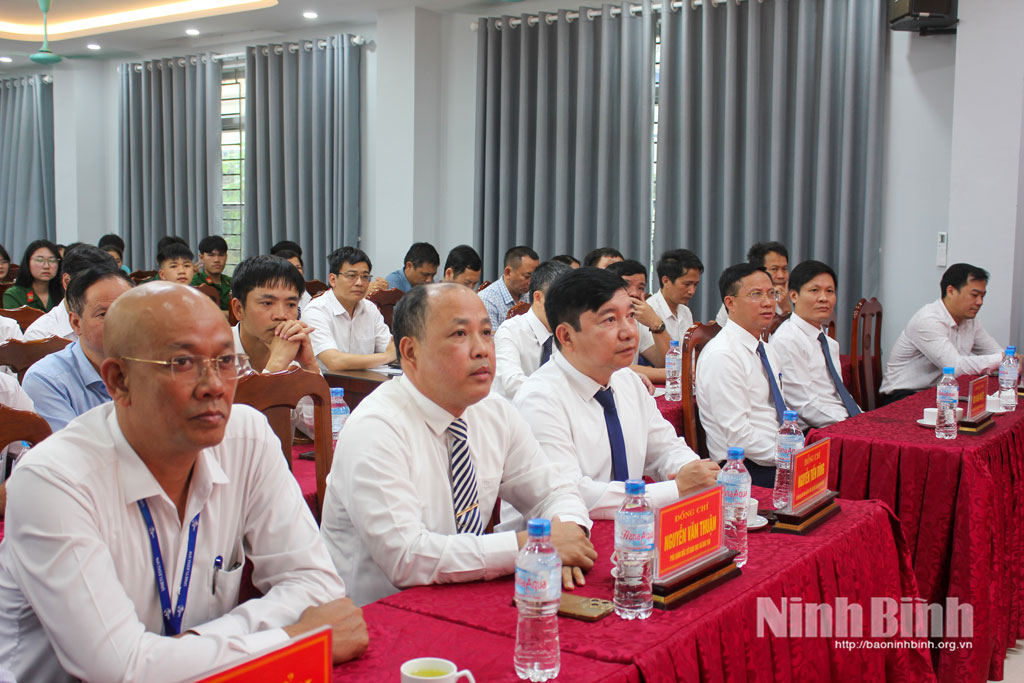 Đồng chí Giám đốc Sở Giáo dục và Đào tạo Nguyễn Tiến Dũng trao cờ Nhất toàn đoàn cho lãnh đạo Trường THPT A Trần Hưng Đạo, Trường THPT Giao Thủy.