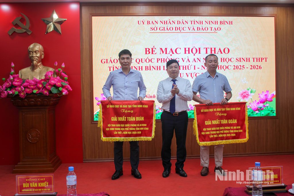 Đồng chí Nguyễn Tiến Dũng, Giám đốc Sở Giáo dục và Đào tạo trao Giấy khen cho các em học sinh có thành tích xuất sắc tại Hội thao.Hội thao GDQPAN học sinh THPT tỉnh Ninh Bình lần thứ I, năm học 2025 – 2026 (khu vực 2) diễn ra từ ngày 13 đến 16/3/2026 tại Trung tâm GDQPAN của Trường Đại học Kinh tế Kỹ thuật công nghiệp Nam Định.