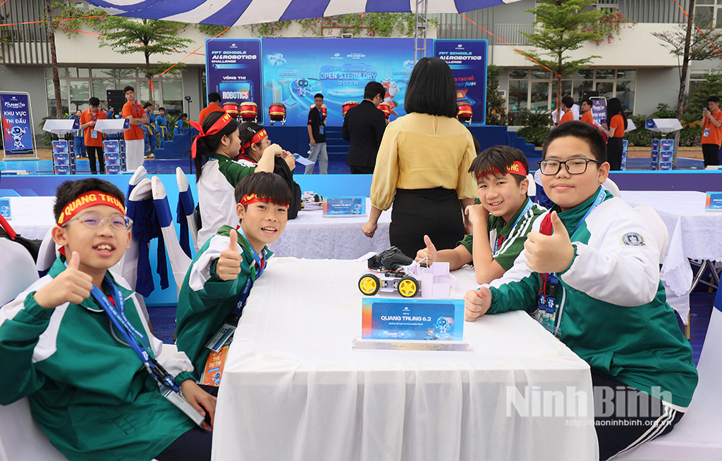 Các đội hào hứng tham gia cuộc thi.Với chủ đề “Sáng tạo số – kiến tạo xanh”, vòng chung kết Cuộc thi Robotics cấp cơ sở 2026 gồm 2 nội dung chính: Chung kết cuộc thi Robotics Fanroc 2026 tại Ninh Bình và trưng bày 25 gian hàng steam nhằm thu hút các học sinh tham gia trải nghiệm, khám phá các lĩnh vực khoa học, công nghệ, kỹ thuật, nghệ thuật và Toán học.
