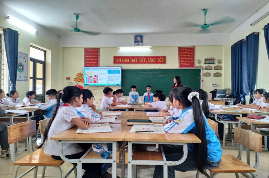 Trong giờ học, các em học sinh đã sử dụng thành thạo thiết bị công nghệ số để nhận nhiệm vụ học tập, tích cực hoạt động nhóm để giải quyết nhiệm vụ học tập được giao, Các em rất sáng tạo trong việc ứng xử tình huống, tìm ra được nhiều cách thức báo cáo kết quả học tập, đưa ra được các chuẩn mực hành vi đạo đức phù hợp, các tiểu phẩm sắm vai thể hiện được sự tự tin, sôi nổi của các em.