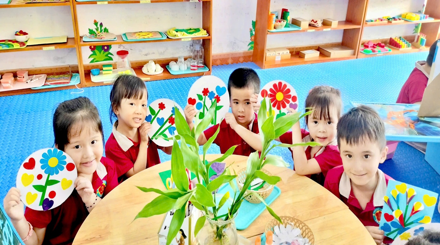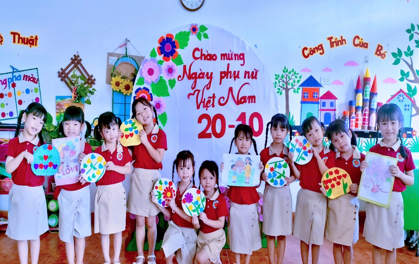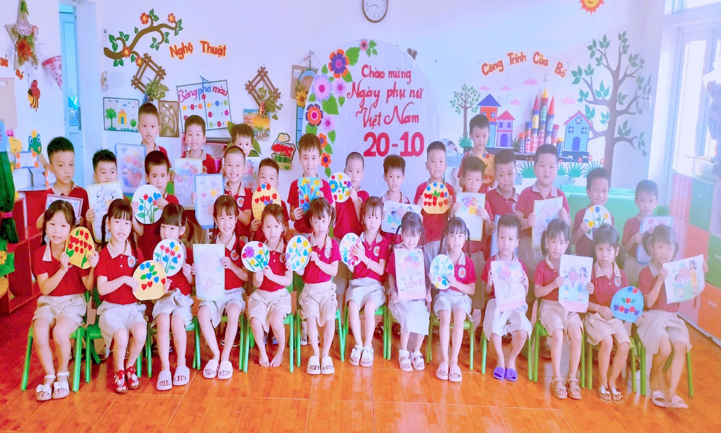 Không khí lớp học rộn ràng, ngập tràn tiếng cười. Những tấm thiệp nhỏ xinh, những bông hoa rực rỡ cùng lời chúc ngây thơ của các bé đã trở thành món quà tinh thần đầy ý nghĩa gửi đến những người phụ nữ mà các con yêu quý.