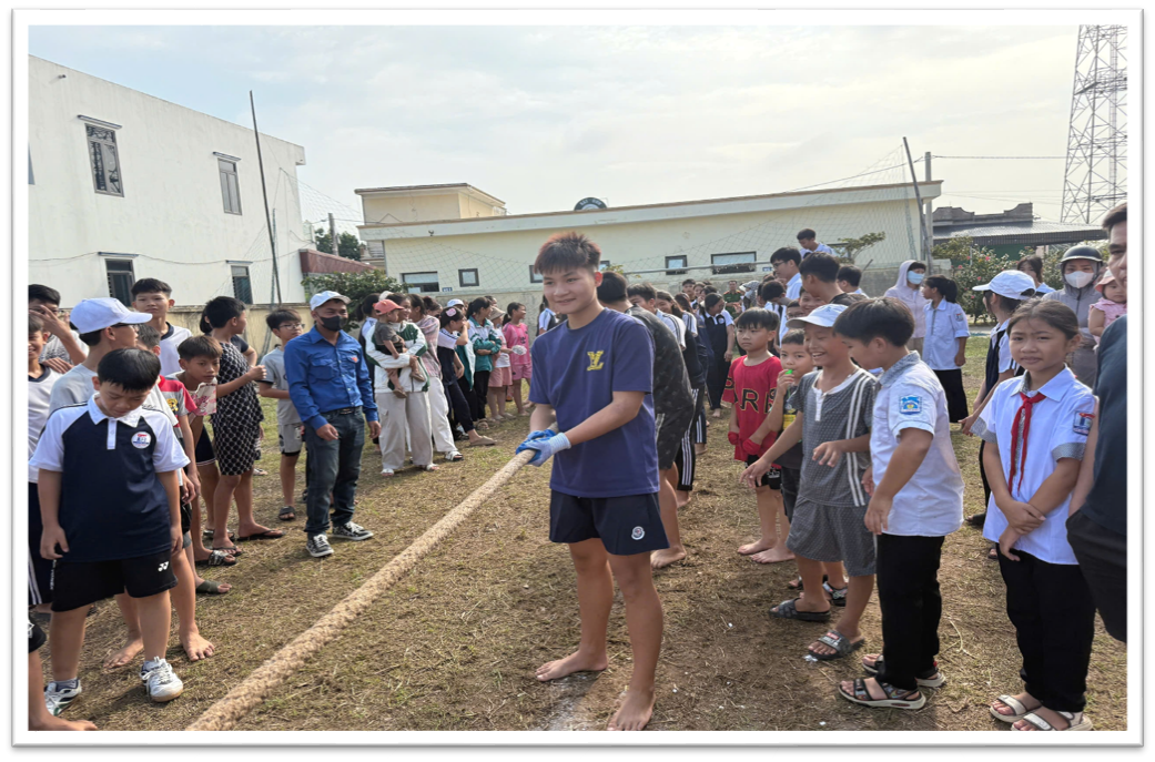 Trong các nhà trường từ mần non, tiểu học, trung học các thầy cô giáo, các bậc phụ huynh còn Tổ chức các hoạt động vui chơi, giải trí và tạo mọi điều kiện thuận lợi nhất để trẻ em được tham gia các hoạt động “Vui Tết Trung thu” gắn với các hoạt động vui chơi, giải trí như : các trò chơi dân gian: bịt mắt bắt dê, kéo co, nhảy bao bố, bịt mắt đánh trống, đi xe đạp chậm…với nội dung phong phú, bổ ích, lành mạnh; các hoạt động thể dục thể thao như: Bóng bàn, cầu lông, đá cầu, cờ vua, Pickerball tạo nên không khí gắn kết. Dù còn nhiều vất vả, nụ cười rạng rỡ trên khuôn mặt các em nhỏ chính là niềm động viên to lớn cho người lớn sau những ngày chống bão.