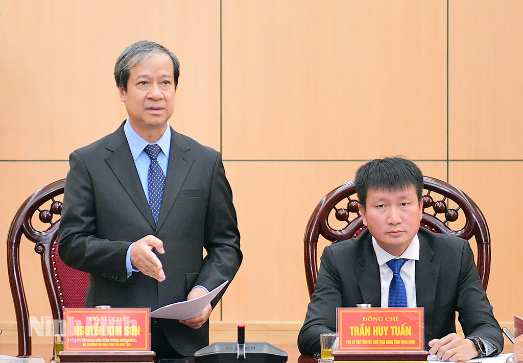 Đồng chí Bộ trưởng Bộ Giáo dục và Đào tạo tin tưởng với sự tập trung lãnh đạo, chỉ đạo sâu sát của Tỉnh ủy, HĐND, UBND tỉnh cùng với truyền thống hiếu học của Ninh Bình, trong thời gian tới tỉnh sẽ thực hiện và hoàn thành thắng lợi các nhiệm vụ phát triển giáo dục và đào tạo, góp phần thực hiện tốt các mục tiêu phát triển toàn diện kinh tế – xã hội của tỉnh trong thời gian tới.