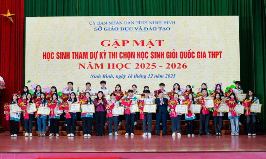 Sau vòng thi thứ hai diễn ra vào cuối tháng 3/2026, Bộ Giáo dục và Đào tạo đã chính thức công bố danh sách 37 học sinh xuất sắc nhất tham dự các đội tuyển Olympic khu vực và quốc tế năm 2026. Ninh Bình vinh dự đóng góp 3 học sinh, thuộc nhóm các địa phương có số học sinh được chọn nhiều nhất cả nước. Những gương mặt tiêu biểu của tỉnh gồm: em Nguyễn Khánh Phúc, học sinh lớp 10 trường THPT chuyên Lương Văn Tụy (môn Tin học); em Nguyễn Thị Bích Ngọc, học sinh lớp 12 trường THPT chuyên Lê Hồng Phong (môn Vật lí) và em Bùi Anh Tú, học sinh lớp 11 trường THPT chuyên Biên Hòa (môn Vật lí).