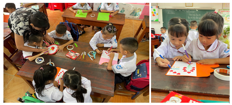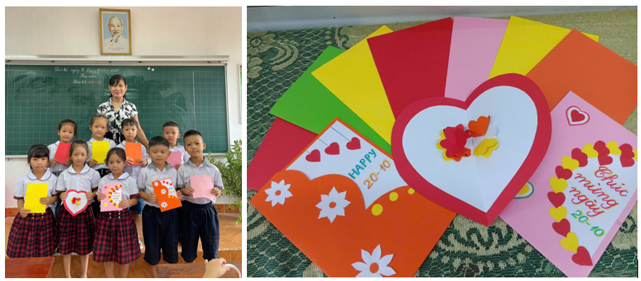 Từng tấm thiệp nhỏ xinh không chỉ là món quà tinh thần chứa chan tình cảm trong trẻo của tuổi thơ, mà còn là bài học ý nghĩa về lòng biết ơn, sự sẻ chia và tình yêu thương. Qua từng nét vẽ, từng dòng chữ ngây thơ, các em học được cách thể hiện cảm xúc, trân trọng và lan tỏa yêu thương bằng chính đôi tay và trái tim của mình.