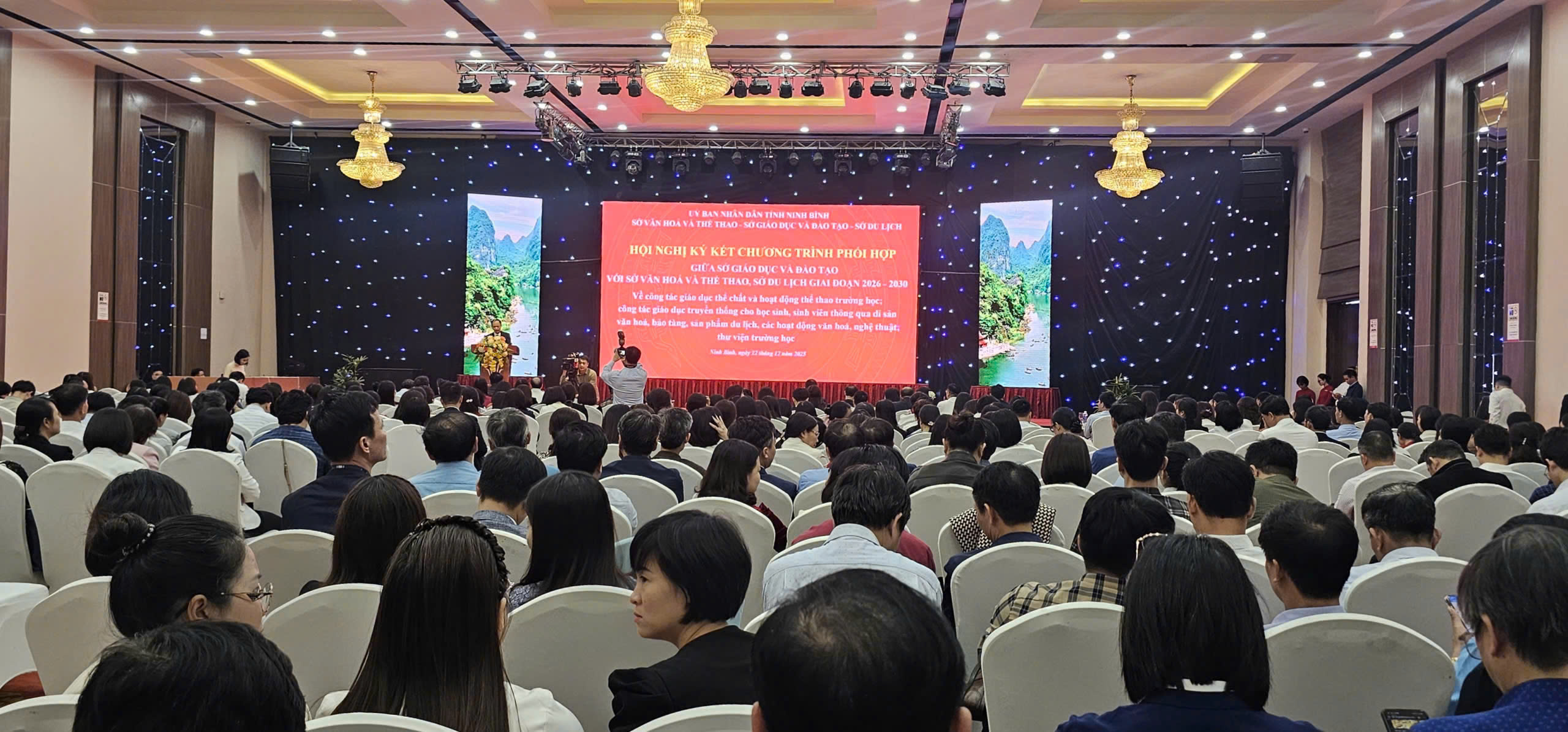 Giáo dục toàn diện không chỉ được kiến tạo trong không gian lớp học, mà cần được nuôi dưỡng trong một hệ sinh thái mở – nơi tri thức gắn với văn hóa, thể chất song hành với thẩm mĩ, và mỗi bài học được tiếp nối bằng trải nghiệm sống động từ thực tiễn. Với tinh thần đó, chiều ngày 22/12/2025, Sở Giáo dục và Đào tạo (GDĐT) tỉnh Ninh Bình đã phối hợp với Sở Văn hóa và Thể thao (VHTT), Sở Du lịch (DL) tổ chức Hội nghị kí kết Chương trình phối hợp giai đoạn 2026–2030 về công tác giáo dục thể chất và hoạt động thể thao trường học; công tác giáo dục truyền thống cho học sinh, sinh viên thông qua di sản văn hoá, bảo tàng, sản phẩm du lịch, các hoạt động văn hóa, nghệ thuật; công tác thư viện trường học.