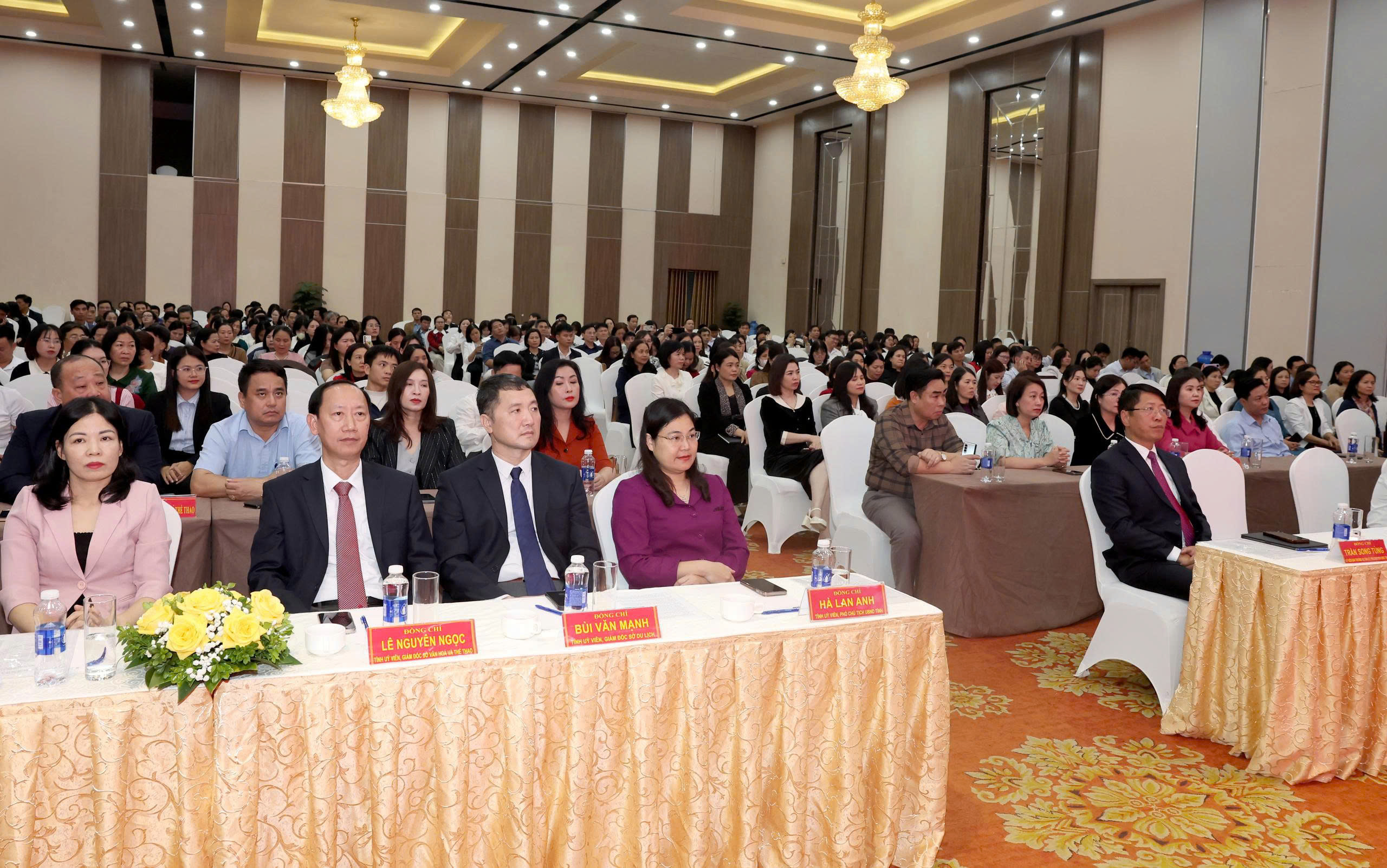 Dự và chỉ đạo Hội nghị có đồng chí Trần Song Tùng, Ủy viên Ban Thường vụ Tỉnh ủy, Phó Chủ tịch Thường trực UBND tỉnh; đồng chí Hà Lan Anh, Tỉnh ủy viên, Phó Chủ tịch UBND tỉnh; đồng chí Trần Thị Kim Dung, Phó Trưởng ban Tuyên giáo và Dân vận Tỉnh ủy. Tham dự Hội nghị còn có các đồng chí Giám đốc Sở, các đồng chí lãnh đạo Sở, lãnh đạo, chuyên viên các phòng thuộc Sở GDĐT, Sở VHTT, Sở DL, các đồng chí phòng viên Báo và Phát thanh, Truyền hình Ninh Bình và gần 500 cán bộ quản lý, Bí thư Đoàn, Tổng phụ trách Đội đến từ các cơ sở giáo dục trong toàn tỉnh.