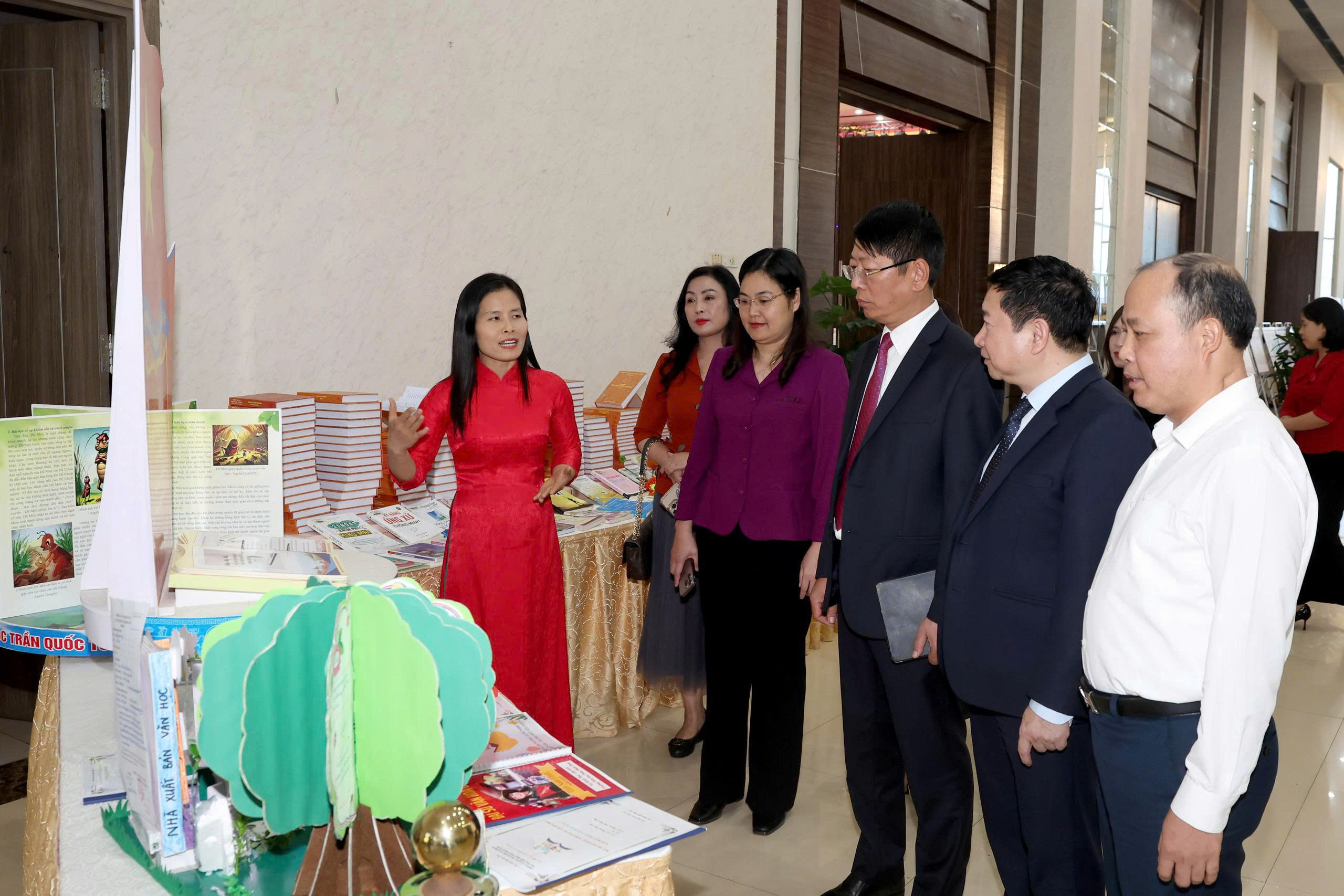 Ngay sau Hội nghị kí kết, các đồng chí lãnh đạo tỉnh, lãnh đạo các Sở và đại biểu tham dự đã tham quan không gian triển lãm, nơi trưng bày các tư liệu, hình ảnh, sản phẩm tiêu biểu về các mô hình trải nghiệm gắn với giá trị, thành tựu thể thao, văn hóa, nghệ thuật, du lịch tỉnh Ninh Bình. Được tổ chức như một “lớp học mở”, không gian triển lãm đã trực quan hóa các định hướng trọng tâm của Chương trình phối hợp bằng những hình ảnh, mô hình sinh động; đồng thời tạo điều kiện để các đại biểu nghe thuyết minh, trao đổi và chia sẻ nhiều ý kiến tâm huyết về việc phát huy hiệu quả các nguồn lực văn hóa, thể thao. du lịch phục vụ mục tiêu giáo dục toàn diện.