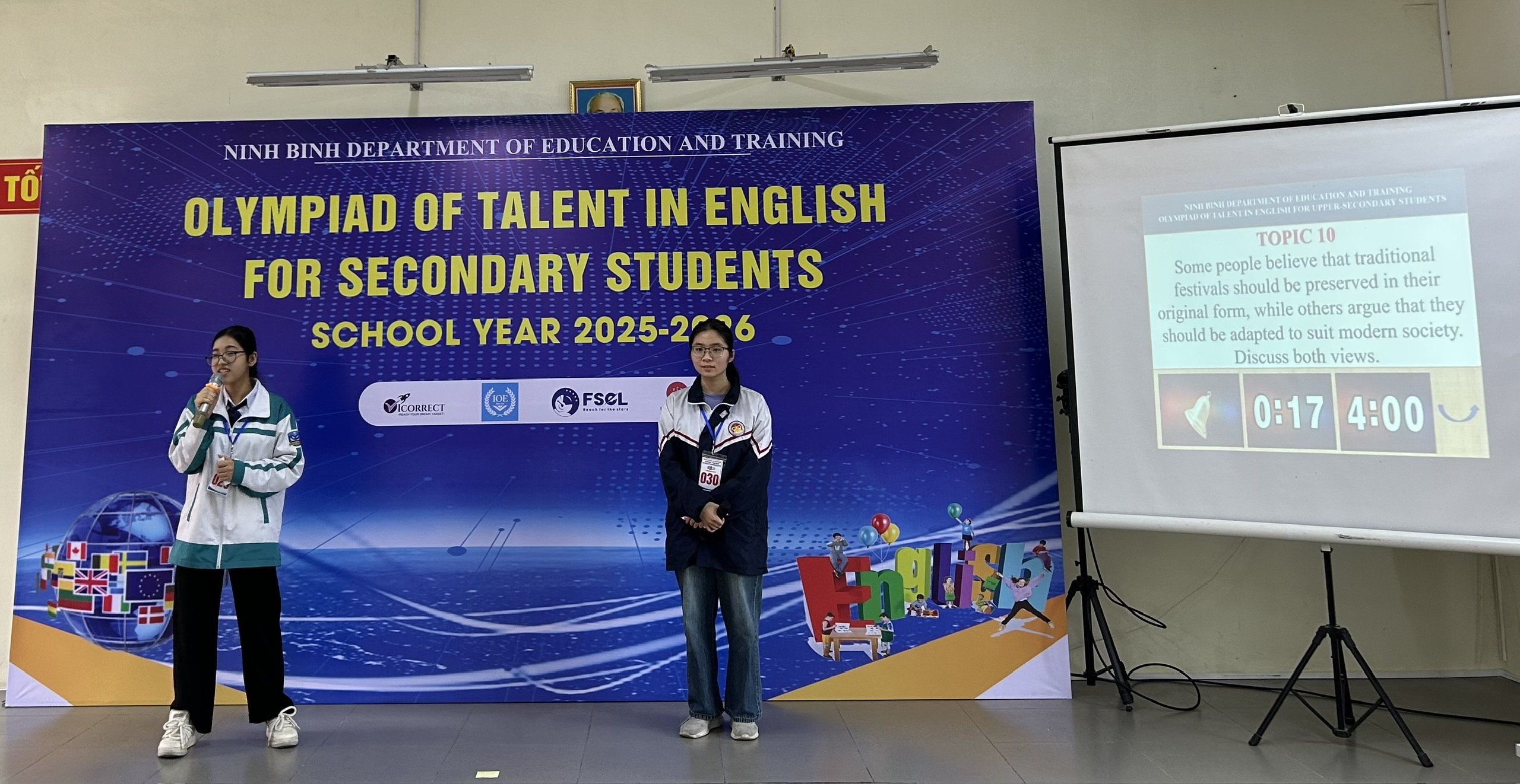 Phát biểu khai mạc tại buổi lễ, đồng chí Bùi Văn Khiết – Phó Giám đốc Sở GDĐT nhấn mạnh: “Cuộc thi không chỉ là một sân chơi học thuật, mà là nơi để các em khẳng định bản thân, bước ra khỏi vùng an toàn và kết nối với thế giới thông qua ngôn ngữ toàn cầu”. Đồng chí cũng khẳng định đây là dấu mốc quan trọng trong nỗ lực đưa tiếng Anh từng bước trở thành ngôn ngữ thứ hai trong trường học tại Ninh Bình.