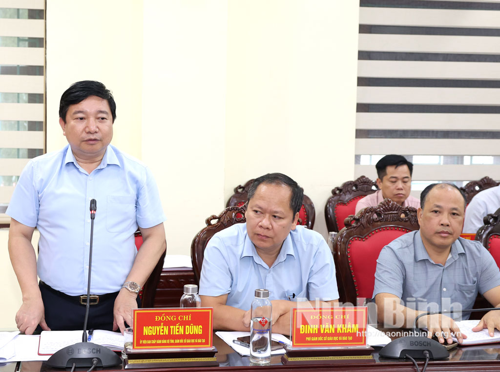 Để tiếp tục duy trì, phát huy thành tích, vị thế của ngành, trên cơ sở nhất trí với các nhiệm vụ ngành đã đề ra trong 6 tháng cuối năm 2025, đồng chí Phó Chủ tịch UBND tỉnh đề nghị ngành Giáo dục và Đào tạo quan tâm thực hiện tốt một số vấn đề: Tập trung triển khai các nhiệm vụ trọng tâm đề ra, chủ động tham mưu cho UBND tỉnh các giải pháp để nâng cao chất lượng giáo dục, chú trọng giáo dục toàn diện và chất lượng giáo dục mũi nhọn; làm tốt công tác tham mưu xây dựng các nghị quyết chuyên đề để thực hiện các nhiệm vụ đột phá trong nhiệm kỳ mới; rà soát cụ thể, kỹ lưỡng các quy định cũ về lĩnh vực giáo dục và đào tạo của 3 tỉnh: Hà Nam, Nam Định, Ninh Bình để sớm tham mưu cho UBND tỉnh đồng bộ, thống nhất các quy định để thực hiện cho phù hợp; chuẩn bị các điều kiện cần thiết để tổ chức năm học mới. Quan tâm xây dựng, phát triển đội ngũ, chú trọng đào tạo, bồi dưỡng về chuyên môn, nghiệp vụ để đội ngũ giáo viên tiếp cận được các quy định mới cũng như những đổi mới giáo dục; tiếp tục rà soát thực trạng cơ sở vật chất trường lớp và bám sát các tiêu chí trường chuẩn quốc gia để tham mưu cho UBND tỉnh đầu tư trên cơ sở nguồn lực của tỉnh; đối với 3 trường chuyên của tỉnh, quan tâm rà soát lại cơ sở vật chất trường lớp để có sự tham mưu cho UBND tỉnh đầu tư nâng cấp, mở rộng.