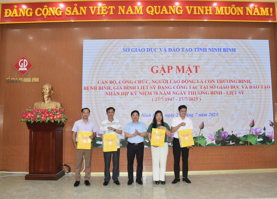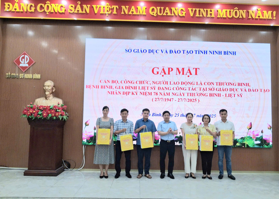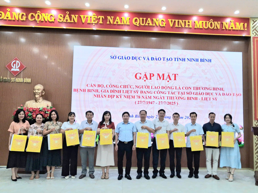 Chiều 25/7, ngành Giáo dục tỉnh Ninh Bình tổ chức buổi gặp mặt và tặng quà tới 42 cán bộ, công chức, người lao động đang công tác tại cơ quan Sở GD&ĐT tỉnh là con thương binh, bệnh binh, gia đình liệt sĩ nhân dịp kỷ niệm 78 năm Ngày Thương binh – liệt sĩ.