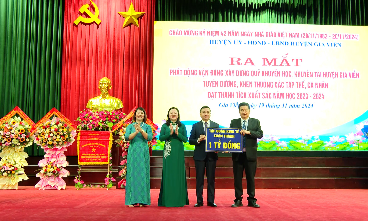 Huyện Gia Viễn vừa tổ chức Chương trình ra mắt, phát động, vận động xây dựng Quỹ Khuyến học, Khuyến tài (KHKT) huyện và tuyên dương, khen thưởng năm học 2023-2024.