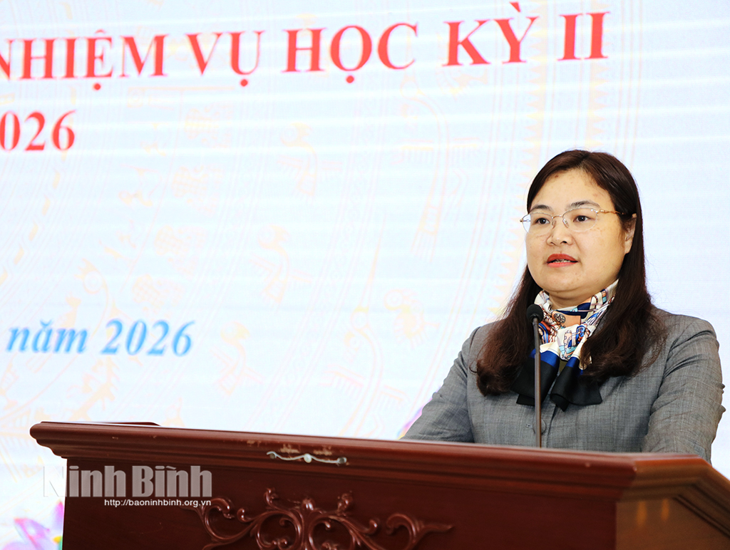 Phát biểu chỉ đạo tại hội nghị, đồng chí Phó Chủ tịch UBND tỉnh Hà Lan Anh đã ghi nhận, biểu dương những kết quả mà Sở Giáo dục và Đào tạo đã đạt được trong học kỳ I. Bước sang học kỳ II, đồng chí Phó Chủ tịch UBND tỉnh yêu cầu ngành Giáo dục tập trung thực hiện tốt một số nhiệm vụ trọng tâm: quan tâm chỉ đạo, xây dựng kế hoạch cụ thể để triển khai nâng cao chất lượng công tác ôn thi tốt nghiệp THPT và tuyển sinh đầu cấp; đổi mới mạnh mẽ nội dung, phương pháp giáo dục đạo đức, lối sống, kỹ năng sống, gắn giáo dục lý tưởng cách mạng với giáo dục truyền thống lịch sử, văn hoá di sản của Ninh Bình…