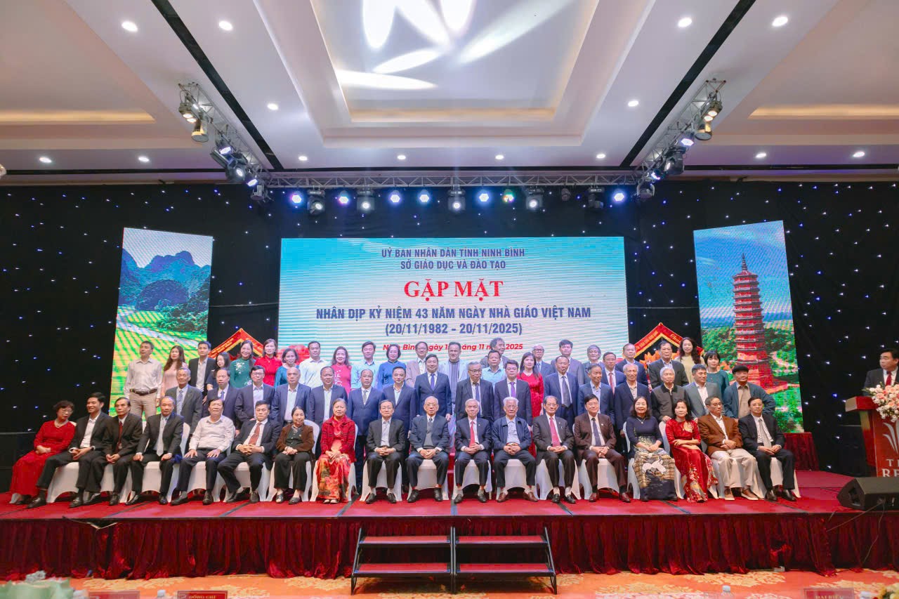 Sáng ngày 15/11/2025, trong không khí phấn khởi của cả nước hướng về ngày Nhà giáo Việt Nam, Sở Giáo dục và Đào tạo (GDĐT) tỉnh Ninh Bình đã long trọng tổ chức buổi Gặp mặt nhân dịp kỷ niệm 43 năm Ngày Nhà giáo Việt Nam (20/11/1982 – 20/11/2025). Buổi gặp mặt mang ý nghĩa đặc biệt khi là sự kiện tri ân đầu tiên được tổ chức sau khi địa giới hành chính ba tỉnh Ninh Bình, Nam Định và Hà Nam chính thức sáp nhập từ ngày 01/7/2025. Đây là dịp để các thế hệ cán bộ, công chức Sở GDĐT từ ba tỉnh hội tụ trong một mái nhà chung, cùng ôn lại truyền thống và tiếp nối chặng đường phát triển mới.