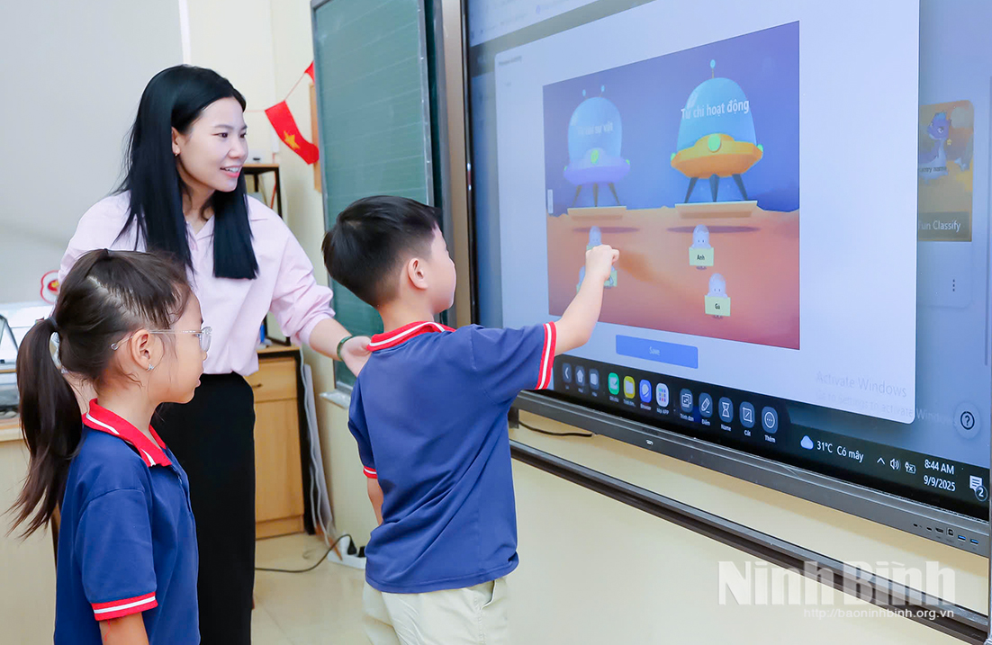Giáo viên trường tiểu học Trần Nhân Tông đóng vai trò thiết kế và hỗ trợ, giúp học sinh nhanh chóng làm chủ các thiết bị công nghệ trong quá trình học tậpTừ mô hình lớp học thông minh