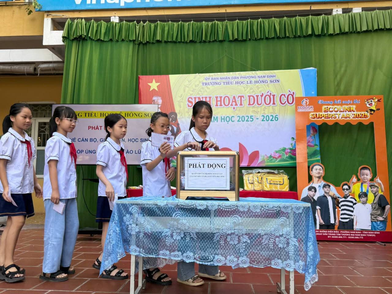Thầy, trò Trường Tiểu học Lê Hồng Sơn, Phường Nam Định phát động ủng hộ đồng bào vùng lũ – chung tay khắc phục hậu quả cơn bão số 10 gây ra