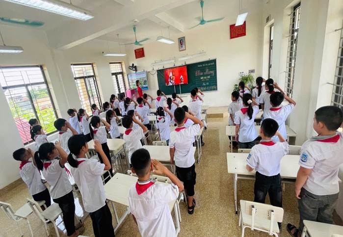Đúng 8 giờ, tất cả các quý vị đại biểu, các thầy cô giáo cùng các em học sinh lắng lại trong giây phút kết nối trực tuyến với Trung tâm Hội nghị Quốc gia. Qua màn hình ti vi, thầy trò trường Tiểu học Quỹ Nhất như được sống trọn vẹn trong bầu không khí trang nghiêm và tự hào của lễ khai giảng chung toàn quốc. Những tiết mục văn nghệ rực rỡ sắc màu vang lên, tiếp nối là nghi lễ chào cờ thiêng liêng trong tiếng Quốc ca hào hùng.