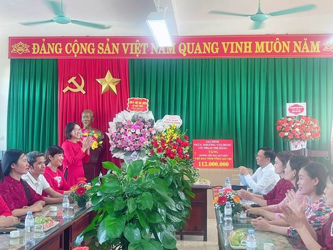 Trong buổi lễ khai giảng nhà trường còn nhận được rất nhiều những lẵng hoa tươi thắm, những món quà đầy nghĩa tình từ lãnh đạo địa phương, các bậc phụ huynh và các mạnh thường quân đã trao tặng cũng như những lời tri ân sâu sắc, đồng thời là nguồn động viên to lớn khích lệ tinh thần thầy trò. Đó là minh chứng cho sự đồng hành bền chặt giữa nhà trường – gia đình – xã hội trong sự nghiệp trồng người cao cả.
