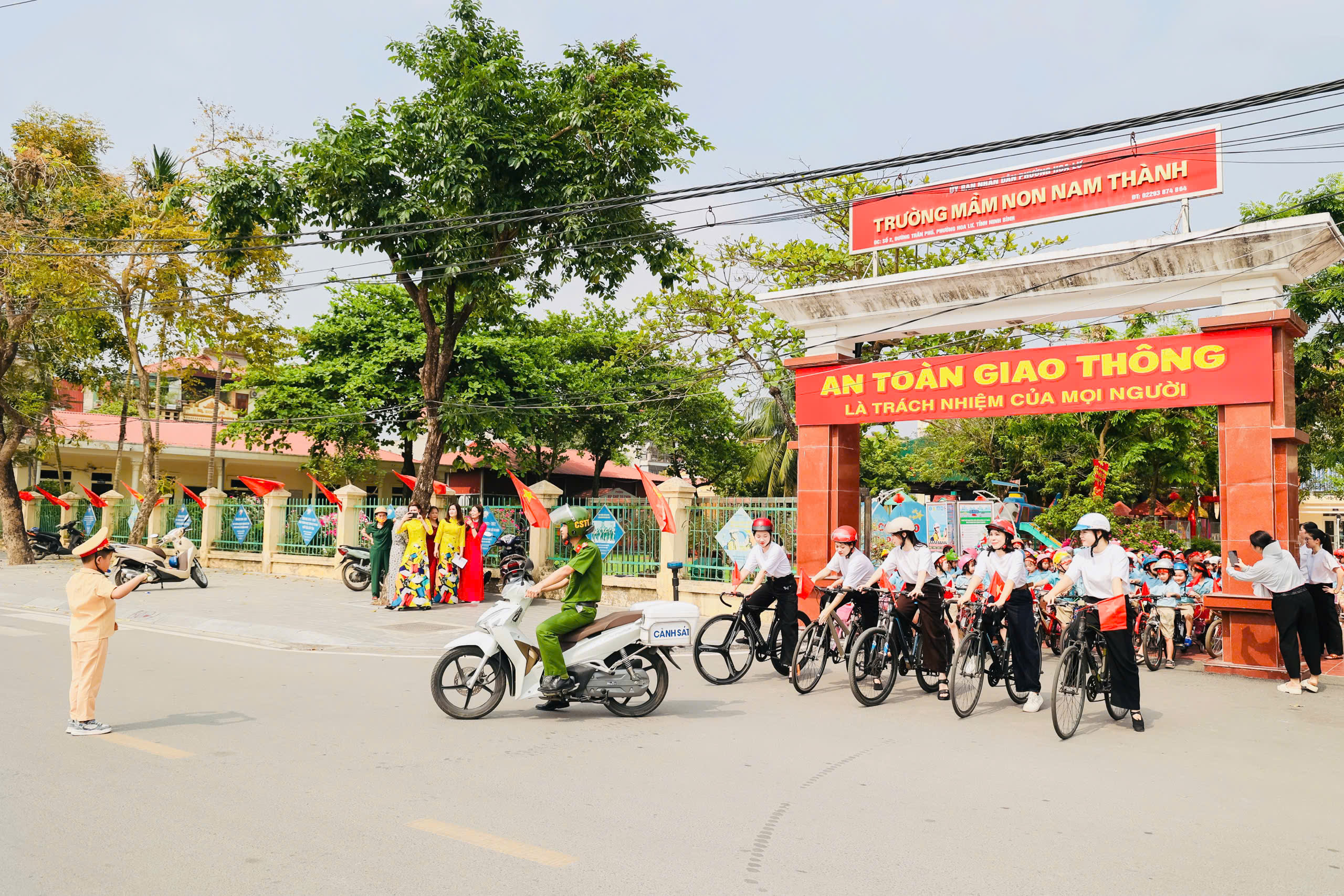 Qua trải nghiệm thưc tế trên sa hình ngã tư đường phố, 185 trẻ của 7 lớp 5-6 tuổi được tham gia đạp xe cổ động trên đường phố đoạn đường Trần Phú đi vòng tròn công viên Vườn Ngũ, phố Phúc Chỉnh 2 phường Hoa Lư và trở về trường học an toàn. Chương trình đã thu hút được rất nhiều phụ huynh và người dân tham dự. Trong không khí vui tươi phấn khởi, Cô và trò trường mầm non Nam Thành sẽ tiếp tục phát huy hiệu quả chương trình “ Tôi yêu Việt Nam” và tổ chức thêm nhiều hoạt động bổ ích, lý thú cho độ tuổi mẫu giáo 3-5 tuổi, góp phần đưa nội dung Giáo dục An toàn giao thông trong trường mầm non đạt hiệu quả cao nhất. Một số hình ảnh trong chương trình “ Tôi Yêu Việt Nam” Cùng con an toàn giao thông mỗi ngày.