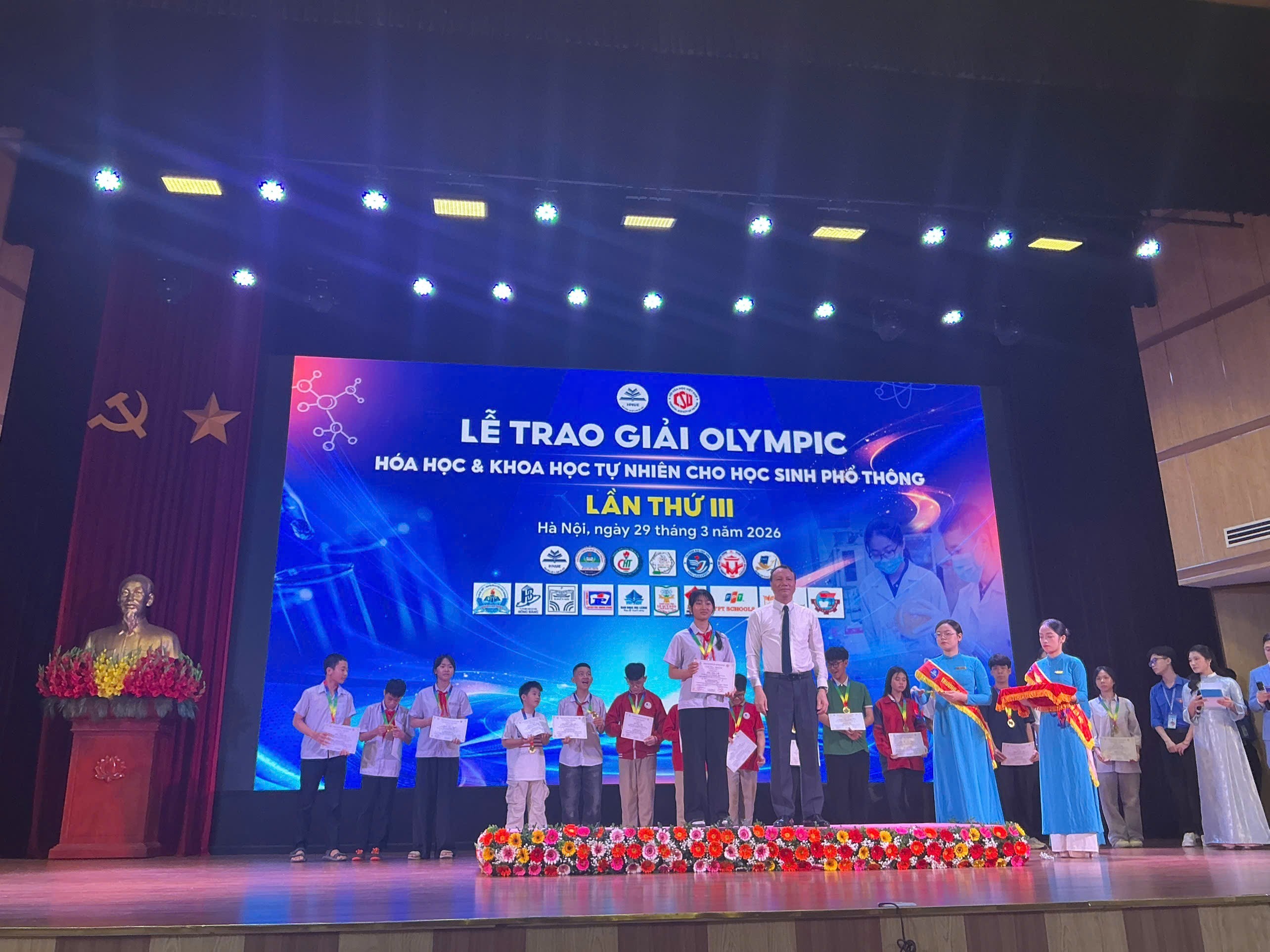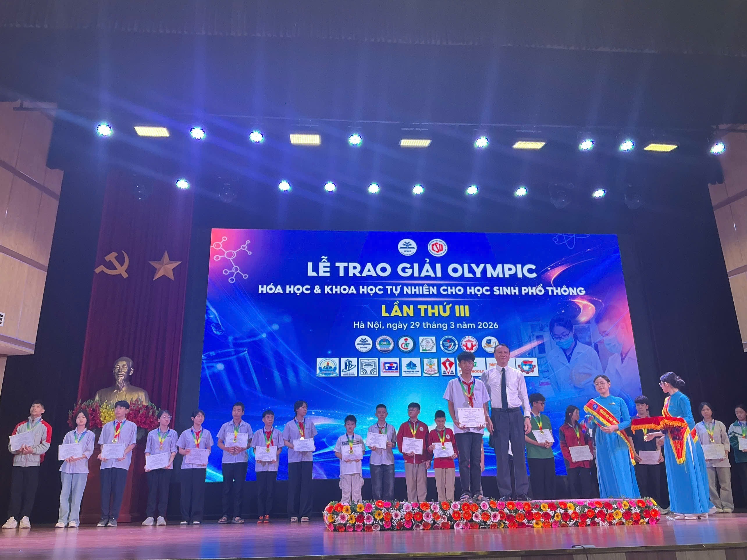 Sáng ngày 29/3/2026, vinh dự và tự hào hơn khi 05 học sinh nhà trường được đứng trên bục danh dự nhận Huy chương vàng tại Lễ trao giải Olympic Hóa học và khoa học tự nhiên cho học sinh phổ thông được tổ chức tại thủ đô Hà Nội. Đây động lực, nguồn cổ vũ cho Thày và Trò nhà trường tiếp tục nỗ lực phấn đấu, thi đua dạy tốt-học tốt.