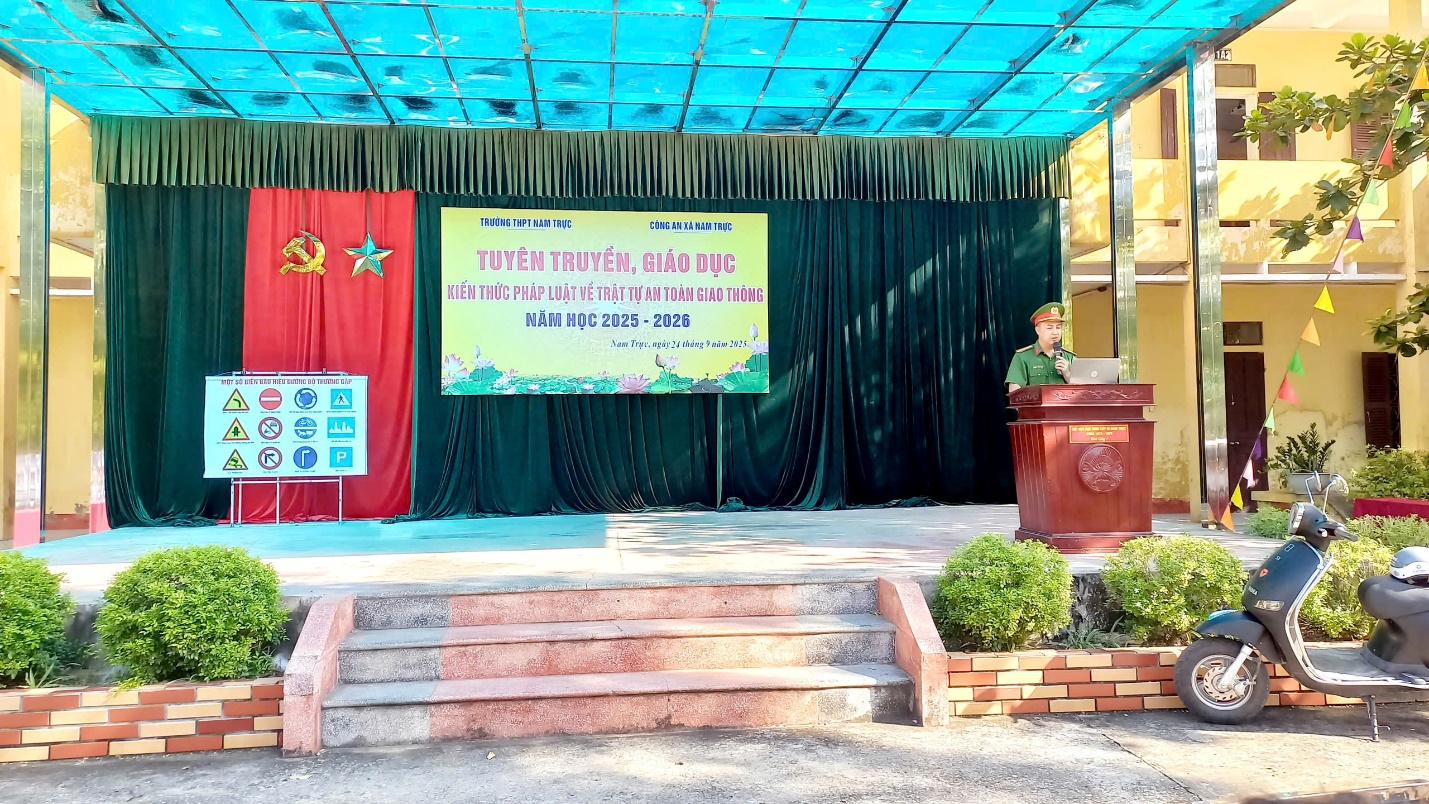 Bên cạnh đó, nhà trường đã phối hợp với Công an xã Nam Trực tổ chức buổi tuyên truyền, giáo dục pháp luật về an toàn giao thông và an ninh trật tự xã hội, giúp các em nâng cao nhận thức, tự giác chấp hành pháp luật và xây dựng nếp sống an toàn, lành mạnh. Cũng trong dịp này, Đội tự quản an toàn giao thông của học sinh đã chính thức ra mắt, góp phần tăng cường công tác đảm bảo an toàn giao thông trong và ngoài nhà trường. Song song với đó, nhà trường đã tổ chức ký cam kết chấp hành các quy định của pháp luật về trật tự an toàn giao thông giữa học sinh, cha mẹ học sinh và nhà trường.