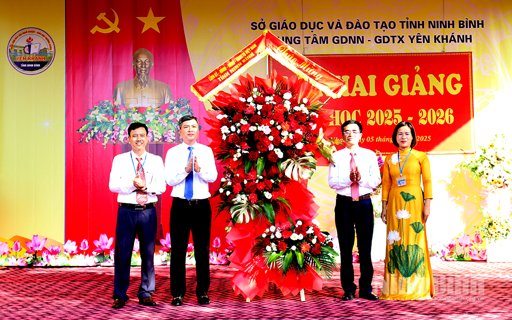 * Ngày 5/9, đồng chí Hoàng Nguyên Dự, Ủy viên Ban Thường vụ Tỉnh ủy, Phó Bí thư chuyên trách Đảng ủy các cơ quan Đảng tỉnh đã dự Lễ khai giảng năm học mới 2025-2026 tại Trường THPT Yên Khánh A. Cùng dự có đại biểu Đảng ủy các cơ quan Đảng tỉnh; đại diện Sở Giáo dục và Đào tạo; lãnh đạo Đảng ủy xã Khánh Mậu…