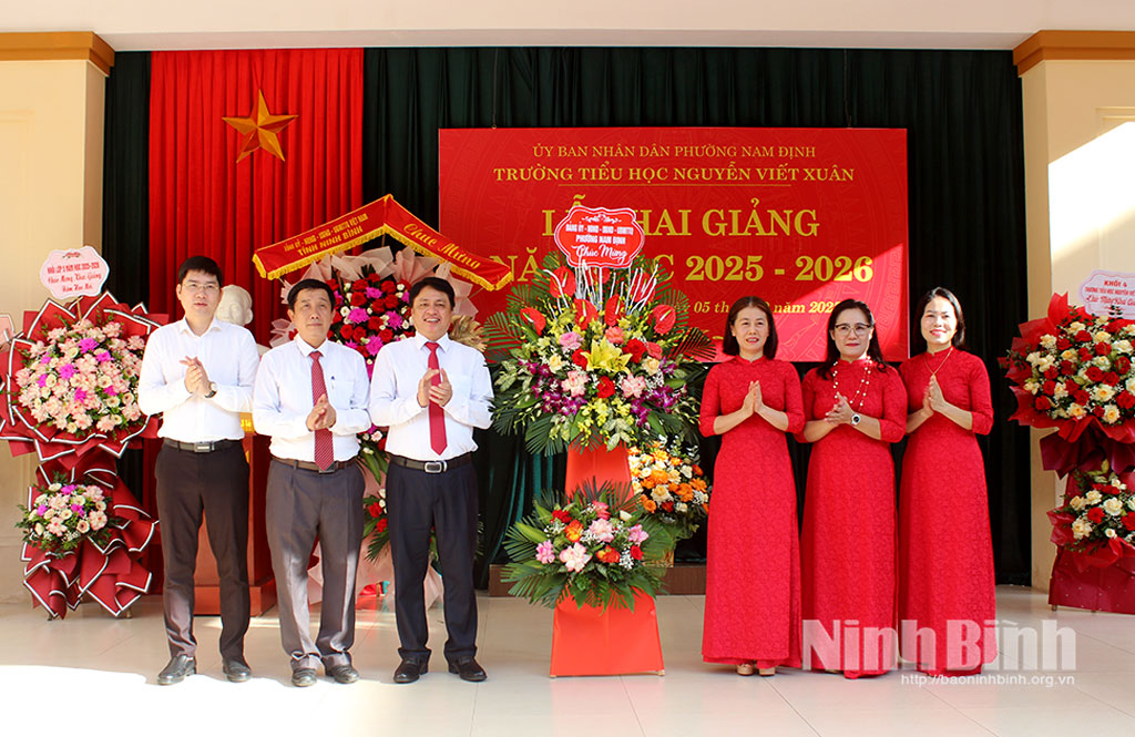 * Sáng 5/9, đồng chí Trần Minh Thắng, Ủy viên Ban Thường vụ Tỉnh ủy, Bí thư Đảng ủy phường Nam Định đã đến dự Lễ khai giảng năm học mới 2025-2026 tại Trường Tiểu học Nguyễn Viết Xuân.