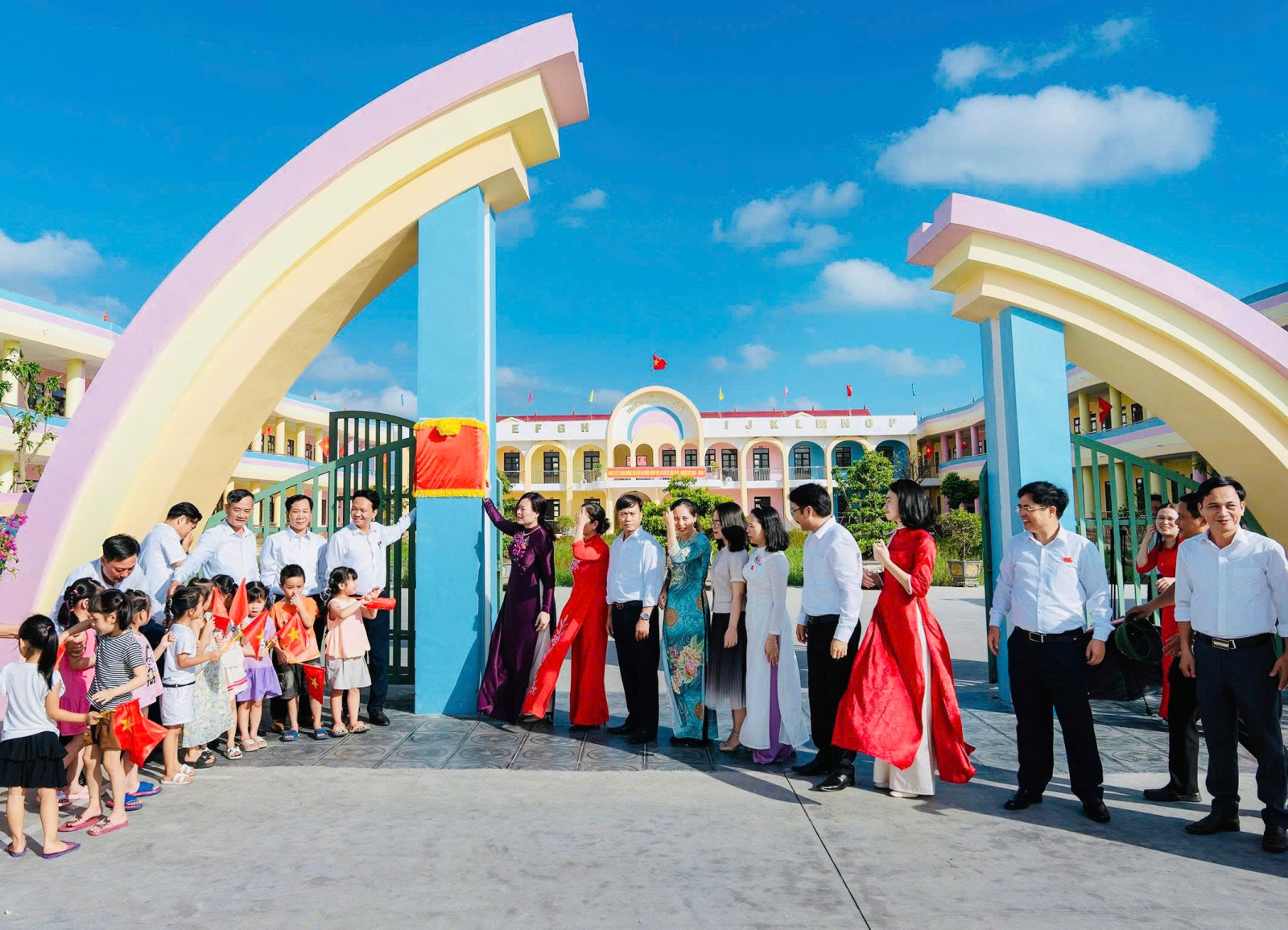 gắn biển công trình trường Mầm non Cổ Lễ